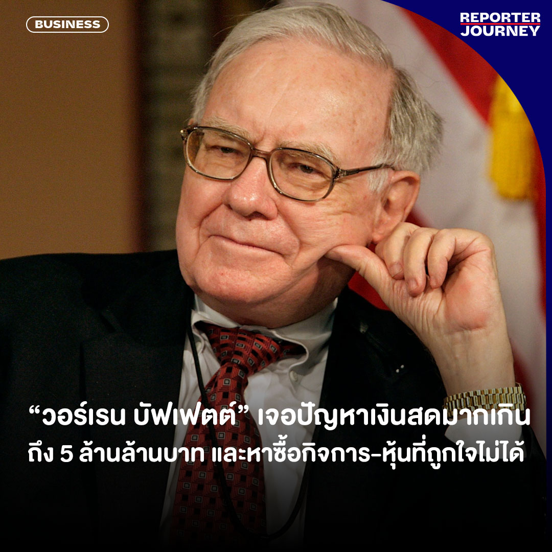 บางทีเป็นคนรวยล้นฟ้ากับกองเงินมหาศาลอย่าง “วอร์เรน บัฟเฟตต์” ก็ใช่ว่าจะไม่มีความเครียด เพราะล่าสุด Berkshire Hathaway กลุ่มบริษัทโฮลดิ้งข้ามชาติของเขารายงานว่า บัฟเฟตต์มีเงินสดสะสมสูงถึง 1.47 แสนล้านดอลลาร์ หรือมากกว่า 5.1 ล้านล้านบาท ขณะที่กําไรจากการดําเนินงานเพิ่มขึ้น 7% เมื่อเทียบเป็นรายปีเป็น 10,000 ล้านดอลลาร์ หรือ 3.4 แสนล้านบาทในไตรมาสที่สอง