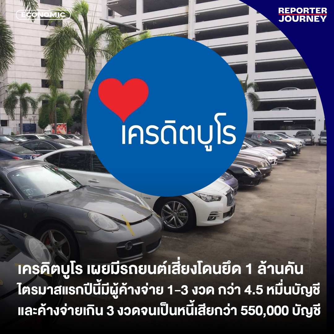 บริษัท ข้อมูลเครดิตแห่งชาติ จำกัด หรือ เครดิตบูโร ประเมินว่าปีนี้อาจมียอดรถยนต์ถูกยึดสูงถึง 1 ล้านคัน เพียงแค่ 3 เดือนแรกของปี พบว่าบัญชีสินเชื่อรถยนต์ที่เป็นลูกหนี้ค้างจ่ายค่างวด 1-3 งวด มีจำนวนกว่า 450,000 บัญชี และเป็นบัญชีหนี้เสียอีก กว่า 550,000 บัญชี