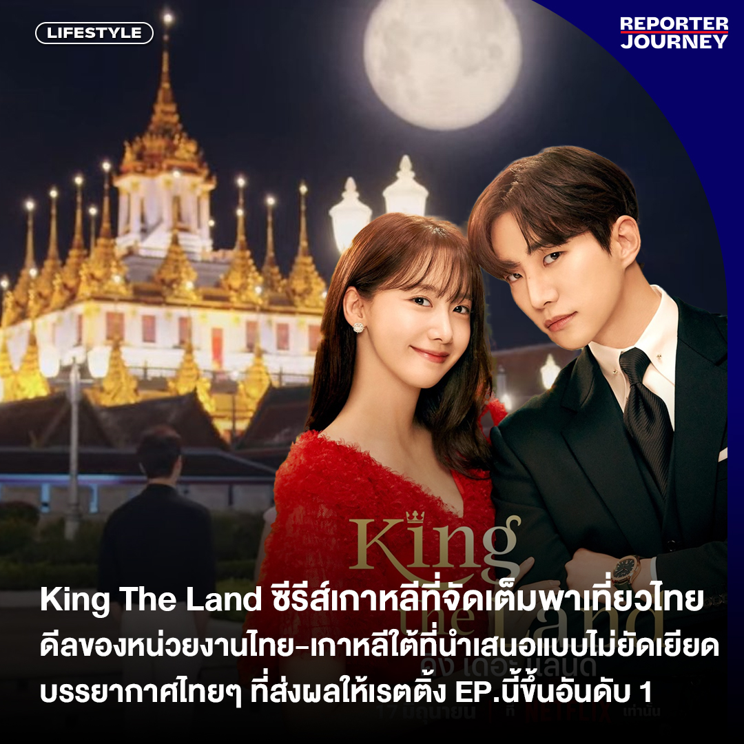 เรตติ้งพุ่งแรงจนฉุดไม่อยู่กับซีรีส์ King The Land EP.10 ที่เพิ่งออกอากาศเมื่อ 16 กรกฎาคมที่ผ่านมา แฟนคลับไทยและต่างชาติต่างฮือฮากับเซ็ตติ้งในตอนนี้ ที่ใช้ประเทศไทยเป็นสถานที่ถ่ายทำอย่างอลังการ จนแฟนซีรีส์แซวว่า ‘นี่แทบจะเป็นคลิปโปรโมทการท่องเที่ยวประเทศไทยทั้ง EP. แล้วนะ’