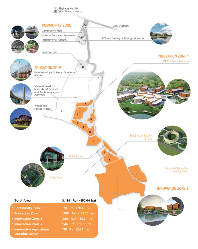 - EECi) : ศูนย์กลางนวัตกรรมในการช่วยยกระดับและพัฒนาอุตสาหกรรมเดิม รวมถึงการสร้างอุตสาหกรรมใหม่