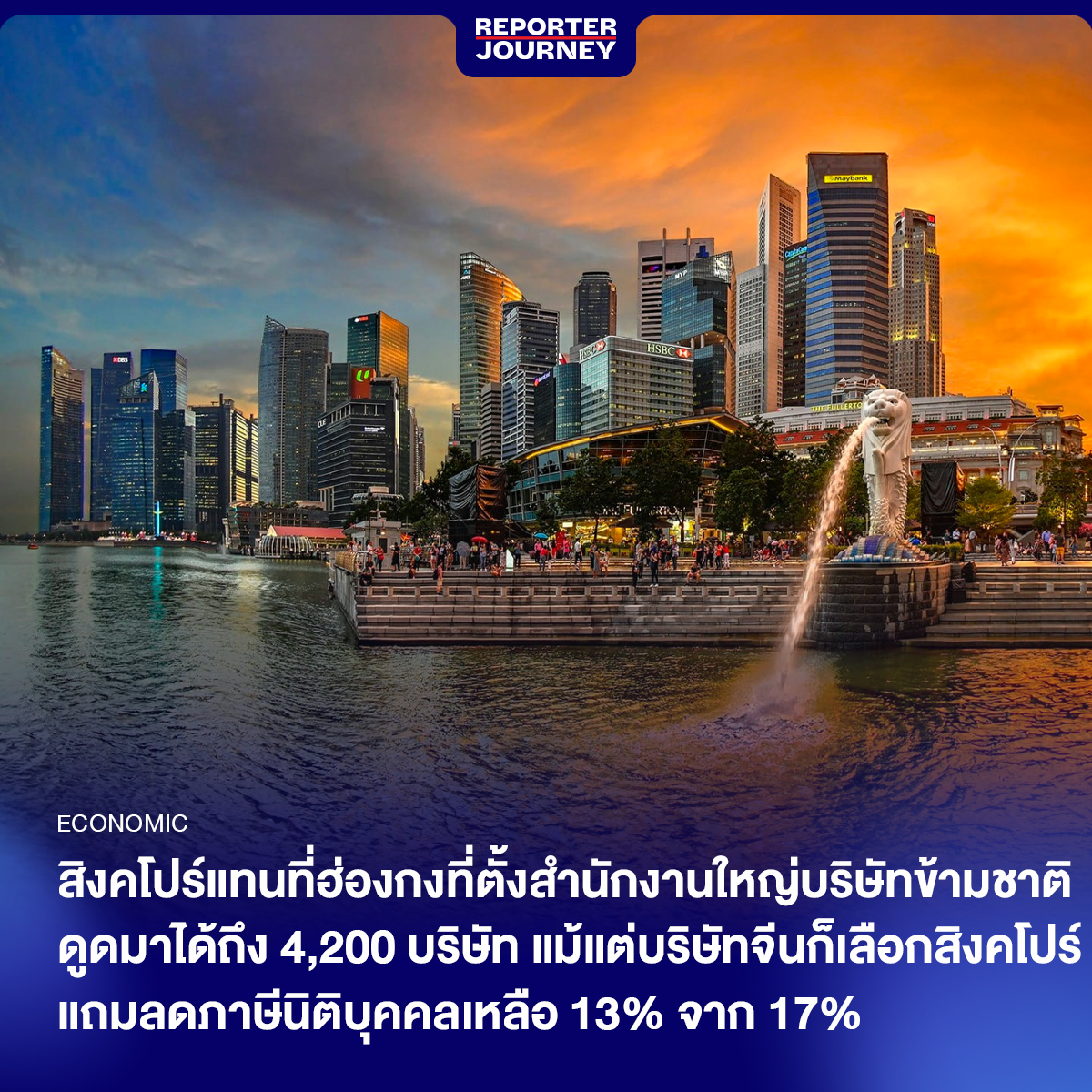 สิงคโปร์ผงาดขึ้นแทนที่ฮ่องกง ดูดบริษัทข้ามชาติระดับโลกตั้งสำนักงานใหญ่ภูมิภาคเอเชีย 4,200 บริษัท แม้แต่บริษัทจีนก็เลือกตั้งออฟฟิศที่สิงคโปร์ แถมลดภาษีนิติบุคคลเหลือ 13% จาก 17% กวดเรียบทั้งบริษัทเทคโนโลยี ขนส่ง EV หรือแม้แต่รถไฟ