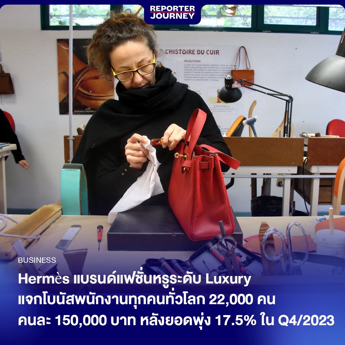 Hermès แบรนด์แฟชั่นหรูระดับ Luxury แจกโบนัสพนักงานทุกคนทั่วโลก 22,000 คน คนละ 150,000 บาท หลังยอดขายพุ่ง 17.5% ใน Q4/2023