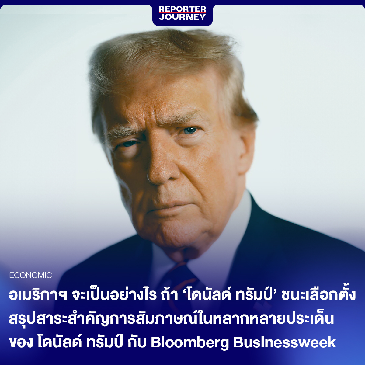 สหรัฐอเมริกา จะเป็นอย่างไร ถ้า ‘โดนัลด์ ทรัมป์’ ชนะเลือกตั้ง สรุปสาระสำคัญการสัมภาษณ์ในหลากหลายประเด็น ของ โดนัลด์ ทรัมป์ กับ Bloomberg Businessweek