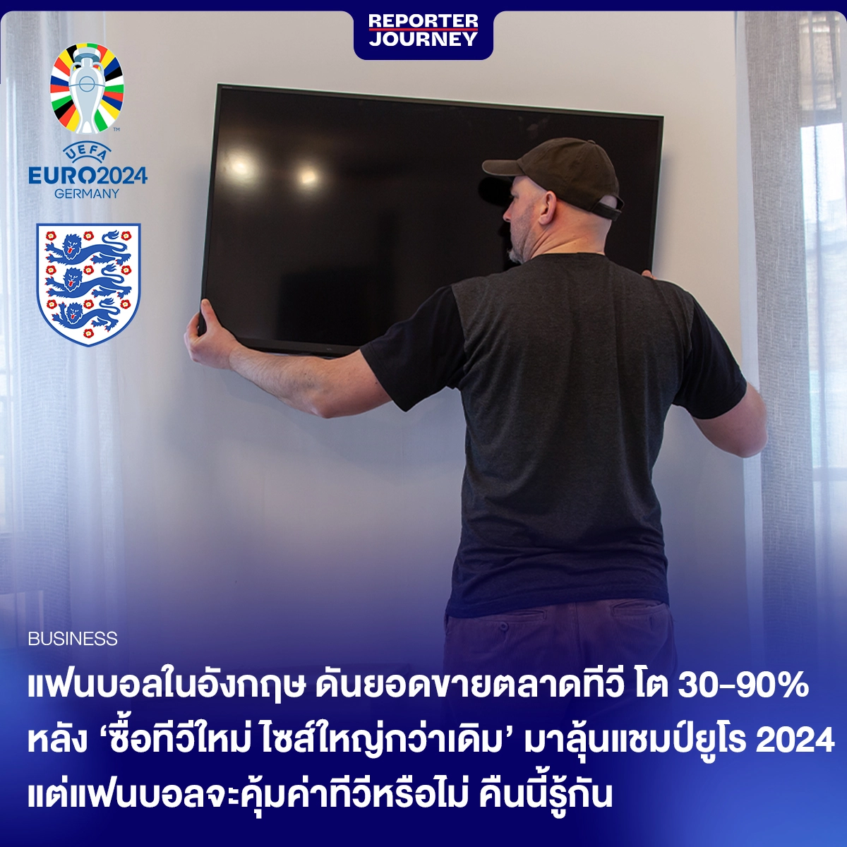 ปั้มหัวใจตลาดทีวี! กลุ่มแฟนบอลในอังกฤษเปย์หนัก ‘ซื้อทีวีใหม่ ไซส์ใหญ่กว่าเดิม’ มาเชียร์ทีมรักลุ้นแชมป์ยูโร ดันยอดขายทีวีจอใหญ่ในหลายพื้นที่เพิ่มขึ้นกว่า 30%-90% แต่แฟนบอลอังกฤษจะคุ้มค่าทีวีหรือไม่ คืนนี้รู้กัน