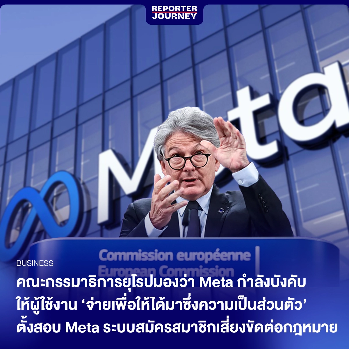 กรรมาธิการยุโรป ‘เธียร์รี่ เบรตัน’ (Thierry Breton) กล่าวว่า “นโยบายจะจ่ายหรือจะยอมของ Meta ละเมิดต่อกฎ D.M.A. กฎดังกล่าวมีอยู่เพื่อให้อำนาจกับกลุ่มผู้ใช้งานที่จะตัดสินใจเองได้ว่าข้อมูลของพวกเขาจะถูกนำไปใช้งานอย่างไร และทำให้แน่ใจว่าบริษัทอื่น ๆ ที่มีนวัตกรรมจะสามารถแข่งขันได้อย่างเท่าเทียมกับบริษัทเทคโนโลยียักษ์ใหญ่ในการเข้าถึงข้อมูลของผู้ใช้งาน” กล่าวได้ว่าเพื่อให้ผู้ใช้งานมีสิทธิ์มีเสียง และสร้างความเท่าเทียมในการแข่งขันของตลาดเทคฯ นั่นเอง