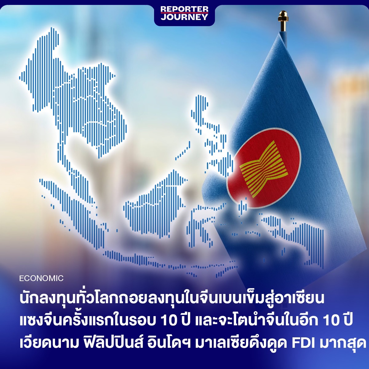 นักลงทุนทั่วโลกถอยลงทุนในจีน เบนเข็มสู่อาเซียนจนแซงจีนครั้งแรกในรอบ 10 ปี และจะเติบโตนำจีนในอีก 10 ปีข้างหน้า โดยเวียดนาม ฟิลิปปินส์ อินโดนีเซีย มาเลเซีย รั้งอันดับหัวแถว FDI เติบโตมากสุดเฉลี่ย 4.5-6.6% ส่วนไทยโตอันดับท้ายตารางแค่ 2.5% เท่านั้น และโตรั้งท้ายมาตลอด 24 ปี