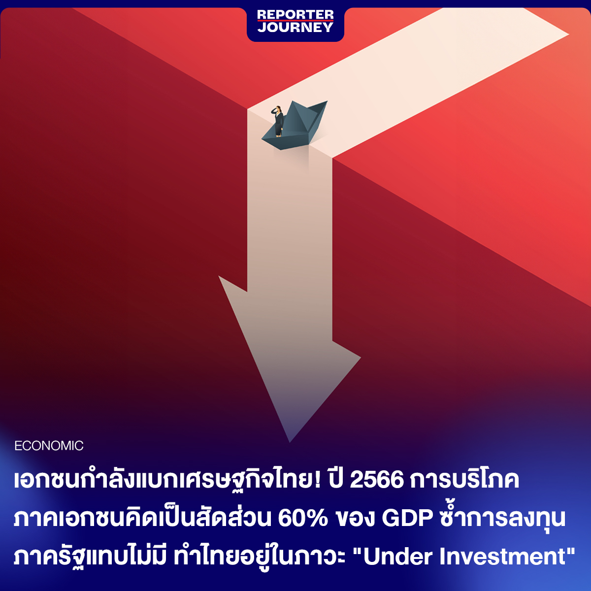 “เอกชนกำลังแบกเศรษฐกิจไทย! ปี66 การบริโภคภาคเอกชนคิดเป็นสัดส่วน 60% ของ GDP แต่จะให้แบกไปนาน ๆ ก็ไม่ไหว เพราะการลงทุนจากภาครัฐแทบไม่มี งบส่วนใหญ่ซ่อมถนน-ทำถนน ทำผู้ประกอบการในไทยเริ่มหนีไปลงทุนนอกประเทศ ตอนนี้ประเทศไทยกำลังตกอยู่ในภาวะ Under Investment”
