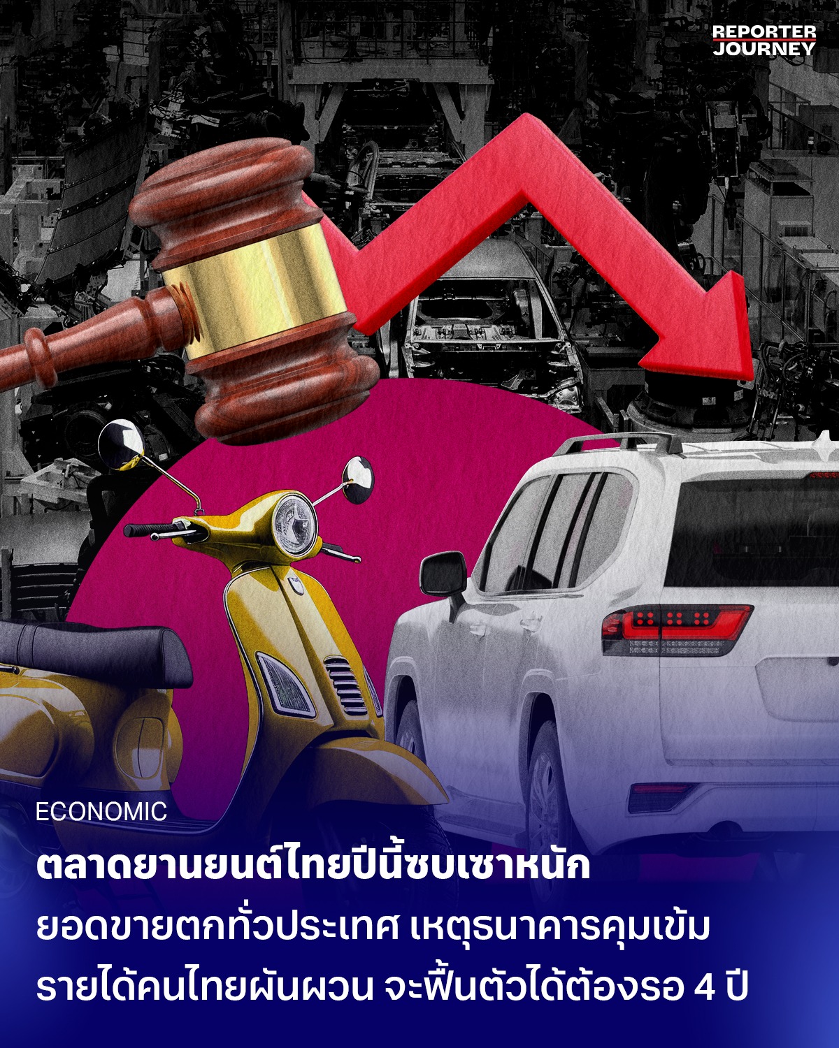 ตลาดยานยนต์ไทยปีนี้ ไม่ว่าจะรถยนต์ รถจักรยานยนต์ รถมือสอง เผชิญสถานการณ์ ‘ซบเซาหนัก’ ยอดขายตกทั่วประเทศ สินเชื่อปล่อยกู้ก็หดตัวลง 3 ปีติด สาเหตุจากธนาคารคุมเข้ม รายได้คนไทยผันผวน กำลังซื้อเปราะบาง อุตสาหกรรมยานยนต์ไทยจะกลับมาบูมได้อีกครั้งอาจต้องรอไปอีก 4 ปี
