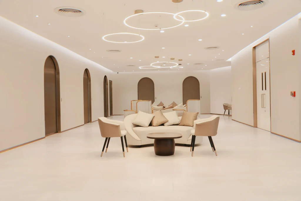 - ระบบไฟฟ้าแสงสว่างที่เป็นมิตรต่อผู้ใช้งานอาคาร เราเลือกใช้หลอด LED ชนิดที่ไม่ปล่อยแสงสีฟ้า ไม่มีการใช้สารปรอทและปล่อยรังสี UV ปริมาณต่ำ