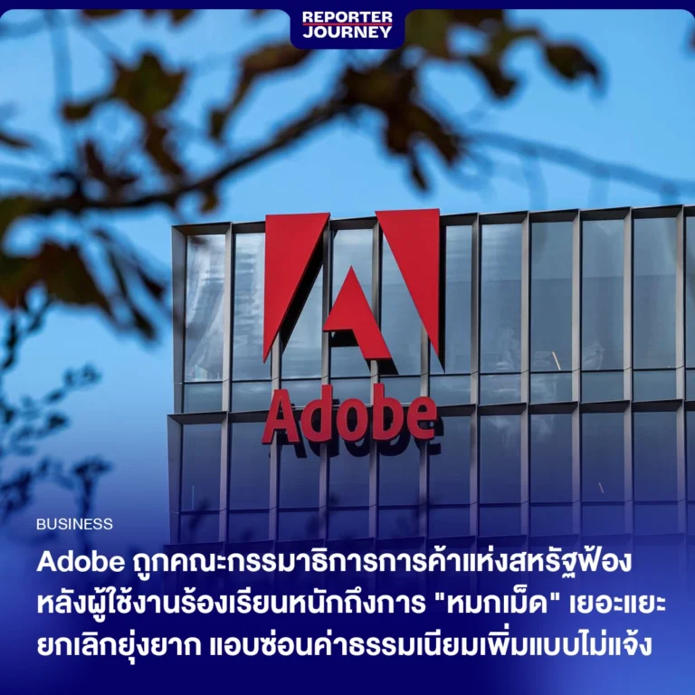 Business Adobe ถูกคณะกรรมาธิการการค้าแห่งสหรัฐฟ้อง หลังผู้ใช้งานร้องเรียนหนัก19 มิถุนายน 202420 มิถุนายน 2024Reporter Journey Team