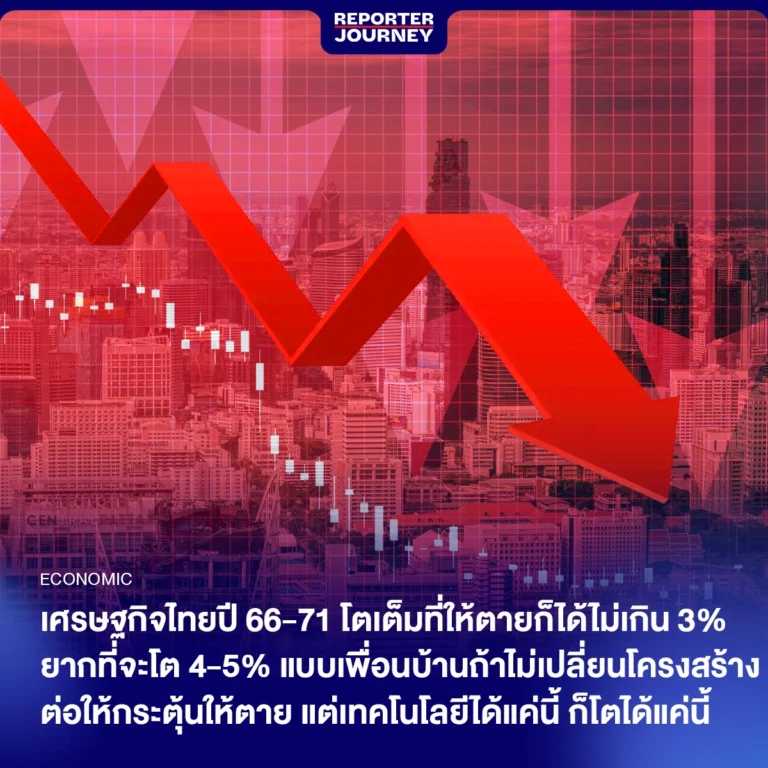 Economics เศรษฐกิจไทยปี 66-71 โตเต็มที่ให้ตายก็ได้ไม่เกิน 3%6 กรกฎาคม 20248 กรกฎาคม 2024Reporter Journey Team